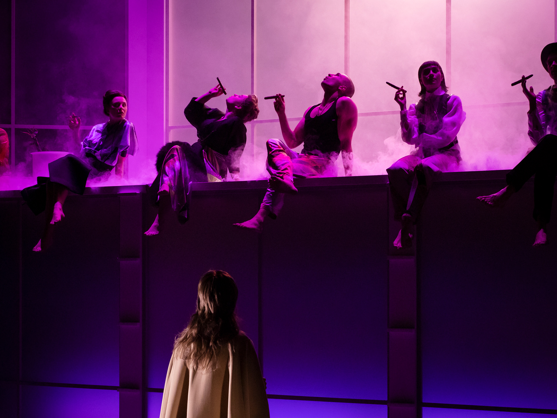 DÜSSELDORFER SCHAUSPIELHAUS märz 2022 REGIE: wolfgang michalek choreographie: bridget petzold bühne: susanne hofmann dramaturgie: beret evensen mit: nils david bannert, caroline cousin, jacob zacharias eckstein, moritz klaus, stella maria köb, gesa schermuly, valentin stückl, blanka winkler fotos: thomas rabsch